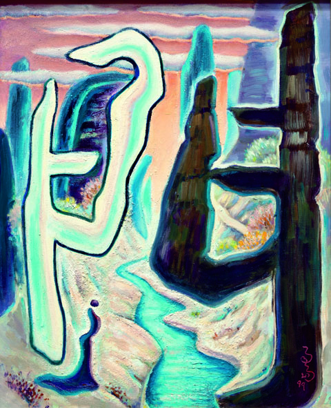 .畢業廈門美專西畫系。1941-2上海美專研究班。同時潛研國畫,經七十餘載之歷練,鍥而不捨。秉承中華傳統文人寫意畫美學理念,專注主觀創造性的「心靈意象」之詮釋。提昇草書風神入畫。縱情揮灑,一筆藏萬筆,從筆墨之外捕捉「絕不似而極似」的形而上的自然神韻與意境,乃創立「新傳統意象派」彩墨畫,獨樹一幟,他對西畫矢志不渝。一旦飜悟,毅然搭上超現實主義列車。創意煥發,天馬行空,從無限想像空間開拓不凡的個人風格。